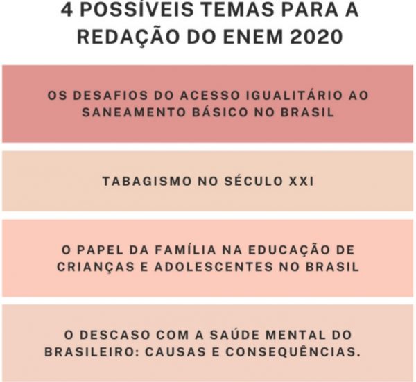 4 POSSÍVEIS TEMAS PARA A REDAÇÃO DO ENEM 2020