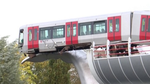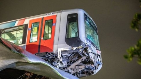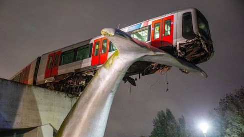 TREM DESCARRILA, MAS É SALVO POR OBRA DE ARTE GIGANTE
