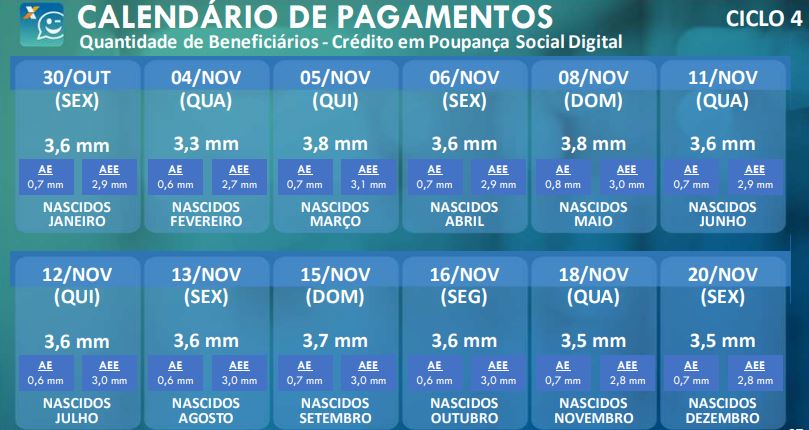Nesta fase de pagamentos, os depósitos para os beneficiários (dividido por mês de nascimento) serão mais próximos.