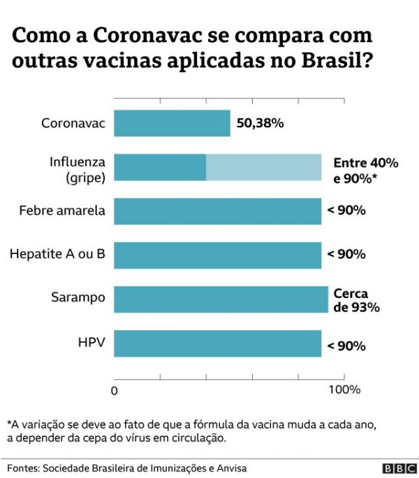 As doses foram divididas proporcionalmente os estados de acordo com suas populações. Ao se considera a divisão regional, as doses da Coronavac serão aplicadas da seguinte forma: Norte: 337.332 doses; Nordeste: 683.924 doses; Sudeste: 1.202.090 doses; Sul: 357.821 doses e Centro-Oeste: 273.393 doses.