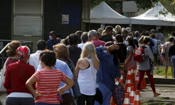Pessoas se aglomeram e fila para vacinação em centro de saúde no Rio de Janeiro Foto: Fabiano Rocha / Agência O Globo