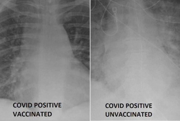 No indivíduo vacinado, é possível observar que a imagem está mais “limpa”. Já a foto do paciente não imunizado, a foto do órgão está turva. Segundo o médico Ghassan Kamel, diretor da UTI Médica do Hospital SSM Health SLU em St. Louis, em Missouri, nos Estados Unidos e o autor das imagens, a coloração mais densa do pulmão indica infecção por bactéria, muco ou secreções.