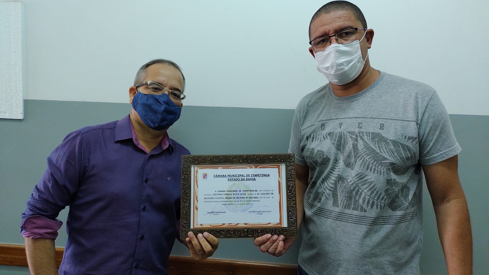 Com quase 30 anos de serviços prestados à comunidade de Itapetinga, Jailson de Oliveira Santos é homenageado pelo vereador Neto Ferraz