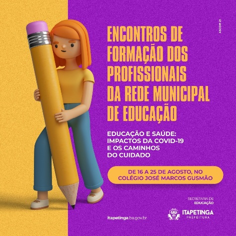 Visando proporcionar um retorno seguro e sustentado dos profissionais da educação municipal às atividades presenciais a Secretaria de Educação de Itapetinga realizará ENCONTROS DE ACOLHIDA, FORMAÇÃO E REFLEXÃO SOBRE COMO LIDAR COM O AMBIENTE DE TRABALHO EM TEMPO DE PANDEMIA. No total serão dez encontros no período de 16 a 25 de agosto, na área livre da Escola José Marcos Gusmão.