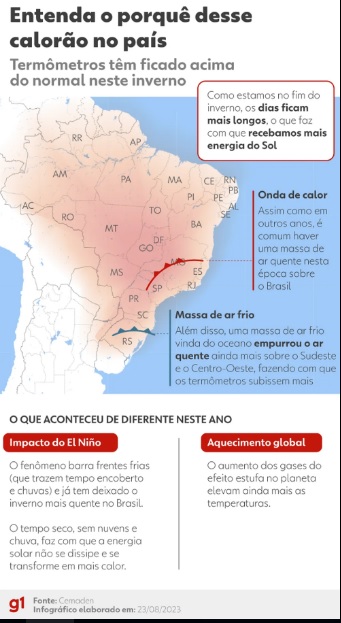 “A chuva faz com que parte da energia do sol seja usada para evaporar a água e aí temos menos energia para fazer a temperatura subir. E as nuvens nos protegem dessa exposição. Como estamos numa época seca, isso não acontece e toda a energia é convertida em calor”, explica Dolif.
