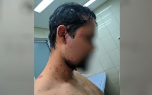 O jovem diz que procurou atendimento de urgência no Hospital de Queimaduras da capital na mesma noite em que ocorreu o acidente.